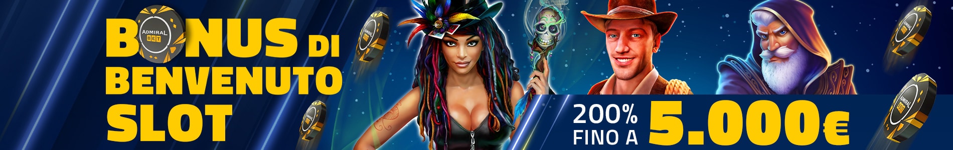 AdmiralBet ti dà il benvenuto con un’offerta imperdibile, pensata per offrirti il massimo divertimento su tutte le slot online e gli altri giochi del casino!