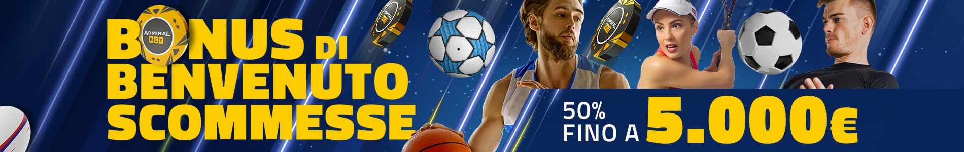 Su AdmiralBet puoi trovare promozioni esclusive come i Bonus di Benvenuto, il Bonus senza deposito di registrazione e iniziative per i giocatori che prendono parte al Programma Fedeltà.